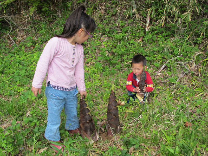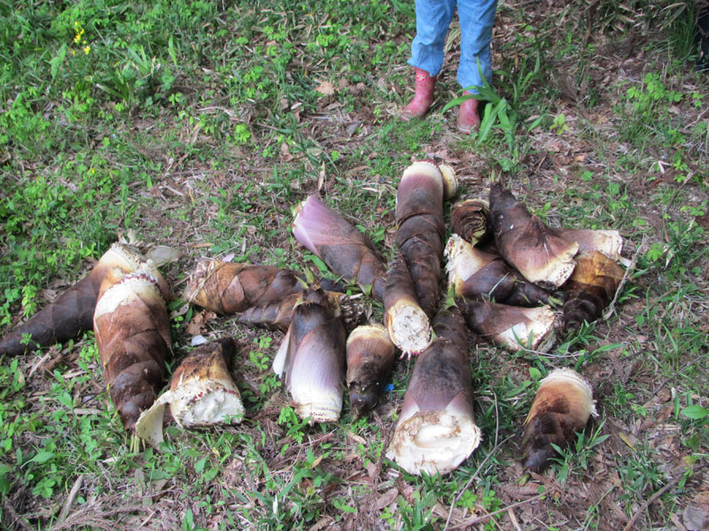 タケノコが最盛期を迎えている大野瀬河上瀬です。 イノシシに負けないよう、今日も張り切って掘りに行ってきました。