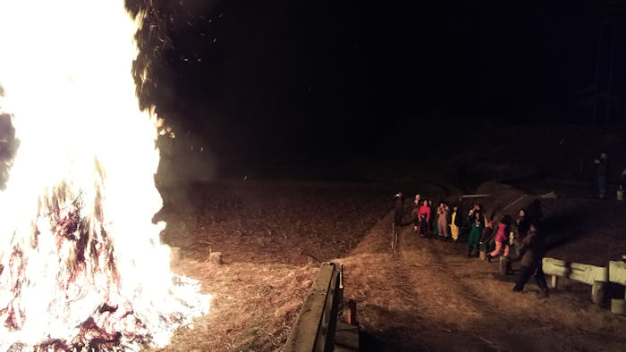 2月7日 日没を待って、どんど焼きの本番です。