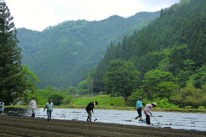 総勢13人で圃場作りと、マルチ掛けを行います。