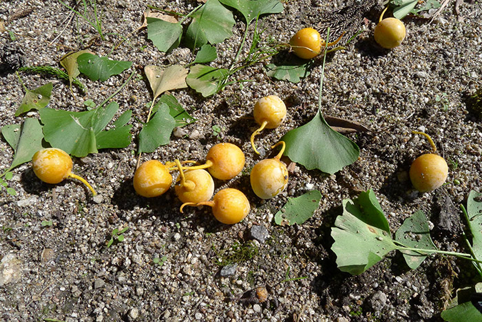 大野瀬神社の境内には、銀杏の実が落ち始めました。