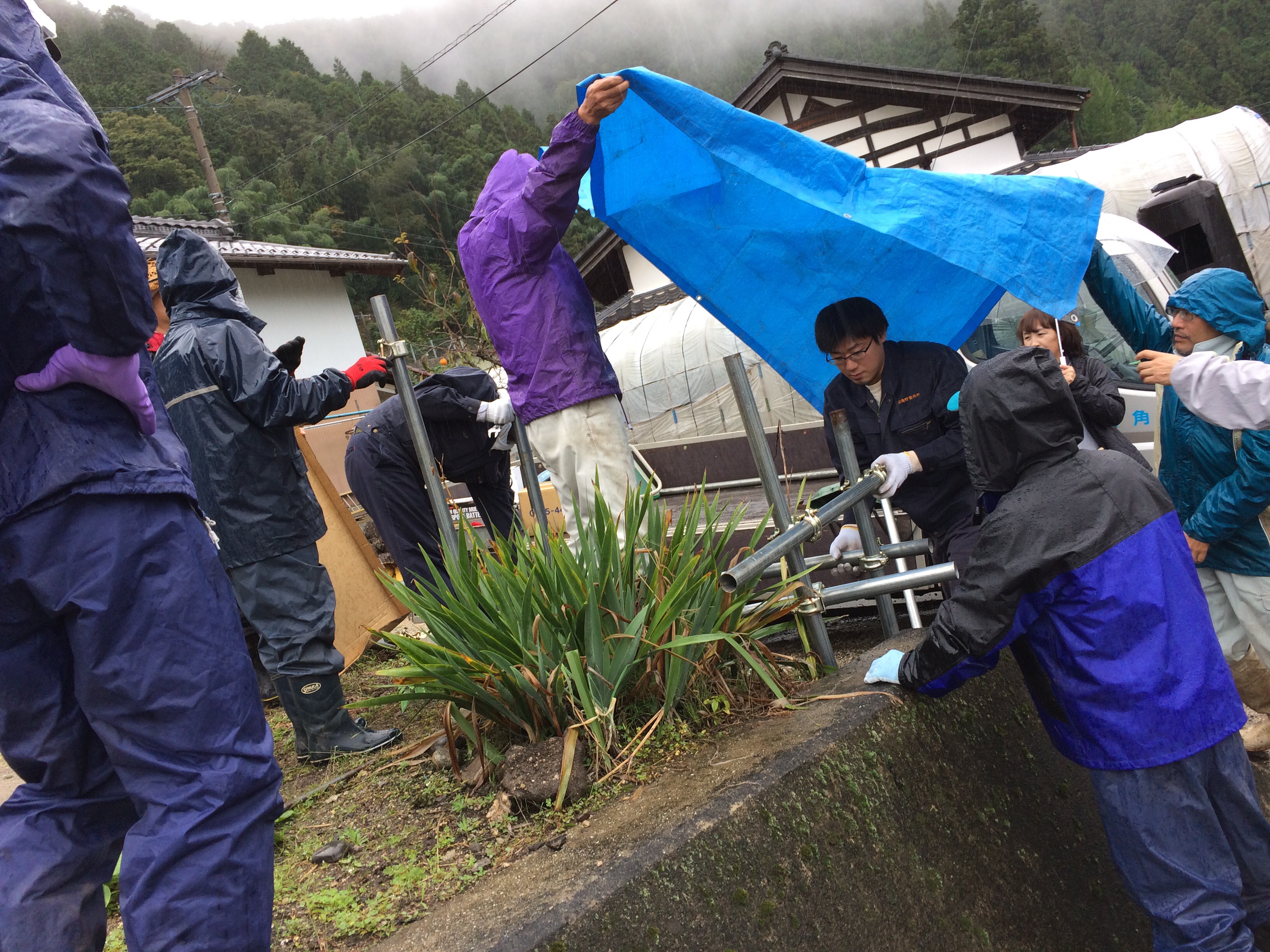 梨野の今年度のワクワク事業である『未来と梨野と自家消費エネルギー』の行事として本日雨天の中、太陽光パネルと風力発電用の風車の設置を行いました。