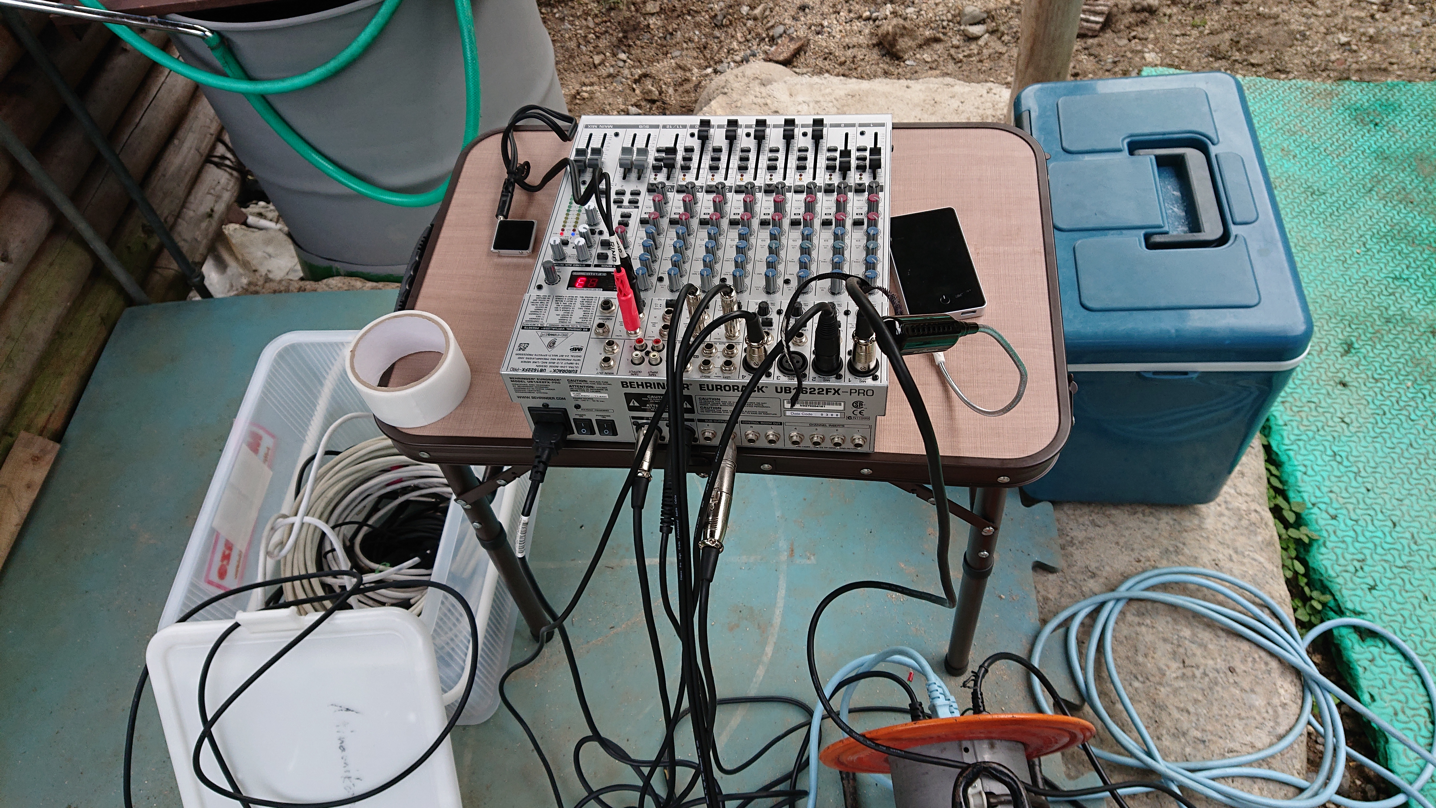 心配された雨も何とかあがり、午後3時頃から音響機器の準備が始まりました。