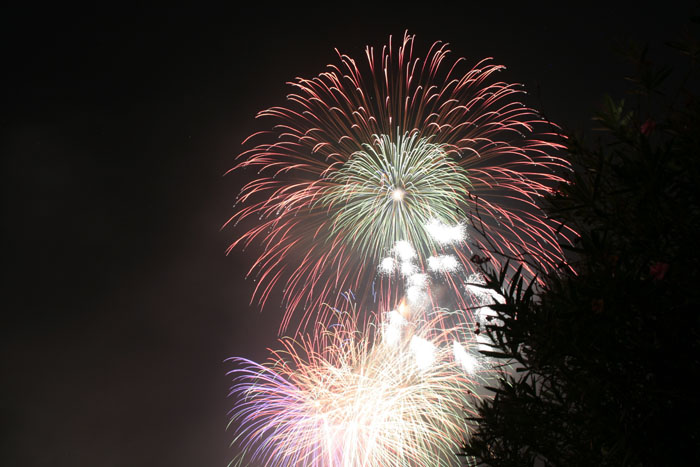 縁あって大野瀬出身者で、現在伊東市で区長をされているO.Mさんより招待があり8月10日にバス1台を借りきって、有志で伊東市の按針祭海上花火大会に行ってきました。最前列席での眼前に迫る大迫力の花火を満喫させていただきました。